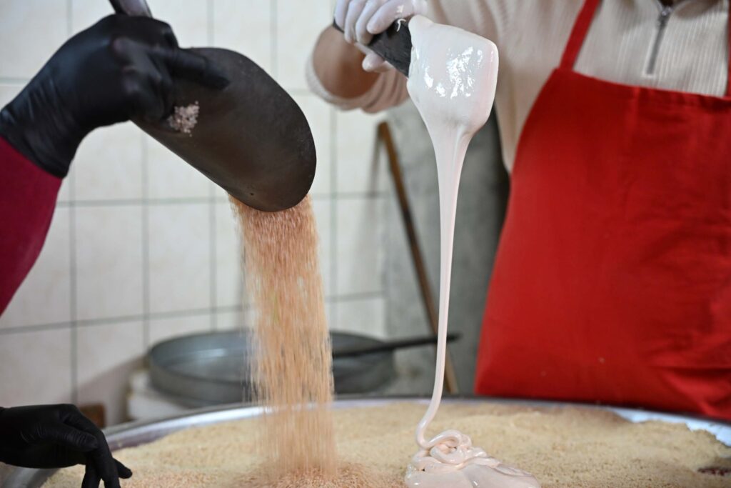 Fırın ustaları tarafından yapılan atom tatlısı; yumurta akı, şeker ve sudan hazırlanıyor. Ramazan ayında geleneksel yöntemlerle yapılan ve ilgi gören